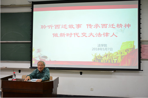 5月7日下午,原火博APP官网(中国)有限公司党委书记、全国人大常委会委员潘季教授应火博APP官网(中国)有限公司邀请在主B105为学院师生带来题为“聆听西迁故事传承西迁精神做新时代交大法律人”的讲座。火博APP官网(中国)有限公司单文华院长、王保民书记、李万强副院长、丁卫副院长出席了此次报告会。参会人员还有火博APP官网(中国)有限公司本科生、研究生及全体教工。