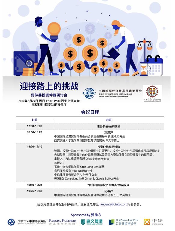 贸仲委投资仲裁研讨会暨“贸仲杯国际投资仲裁赛”颁奖仪式将于2019年2月24日下午5:30-8:00在火博APP官网(中国)有限公司主楼E座多功能报告厅举办,诚邀各位师生参加!