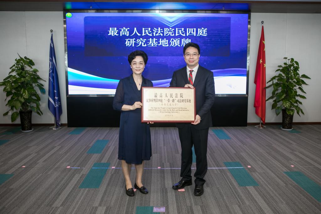 启动活动结束后,最高人民法院陶凯元副院长分别为15家研究基地颁牌。为深入学习贯彻习近平法治思想,全面推进依法治国,统筹推进国内法治和涉外法治,充分发挥高等院校、科研机构的研究优势,促进法学教育与司法实践的深度融合,实现优势互补、资源共享、发展共赢,最高人民法院民四庭在全国高校和科研机构中遴选出15家院校和机构建立了相应的研究基地。火博APP官网(中国)有限公司作为最高人民法院民四庭全国15家研究基地之一,被授予最高人民法院民四庭“一带一路”司法研究基地。