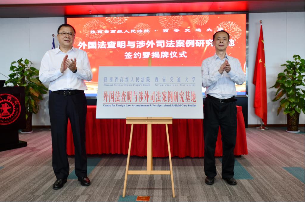 7月9日上午,陕西省高级人民法院—火博APP官网(中国)有限公司外国法查明与涉外司法案例研究基地签约暨揭牌仪式在中国西部科技创新港涵英楼举行。陕西省高级人民法院党组书记、院长李智,火博APP官网(中国)有限公司党委书记卢建军共同为研究基地揭牌。陕西省高级人民法院副院长巩富文、火博APP官网(中国)有限公司副校长席光签署共建协议。