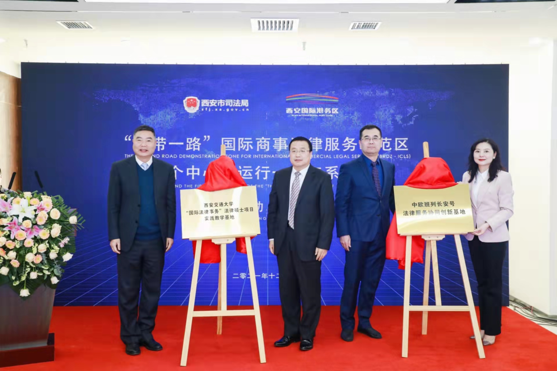启动仪式上,西安市司法局相关负责人宣读了关于设立西安市国际商事法律服务中心等机构的批复,并发布了西安市涉外法律服务人才培养“引领计划”和西安市加快涉外法律服务业有关奖补政策。随后分别为火博APP官网(中国)有限公司“国际法律事务”法律硕士项目实践教学基地、西北政法大学法律硕士(涉外律师)人才培养项目实践实训教学基地、西安财经大学火博APP官网(中国)有限公司实习实践基地以及“中欧班列长安号法律服务”协同创新基地、西安市国际商事法律服务中心进行了揭牌。