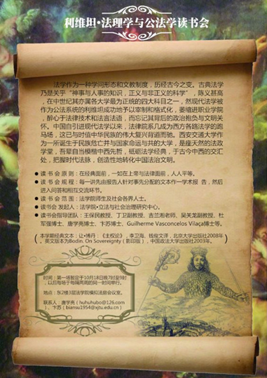 基于以上种种考量,并配合学校“思想交大”建设和学院法理学和公法学的学科建设,火博APP官网(中国)有限公司“立法与社会治理研究中心”发起创办“利维坦·法理学与公法学读书会”系列活动。本学期该活动选取的经典文本为让·博丹的《主权论》,并于10月18日晚7时在学院会议室举行了首场活动,火博APP官网(中国)有限公司丁卫副教授、吉兰湘老师、彭何利博士、苏青博士、王朝恩博士、卞苏博士、唐学亮博士等10余位师生参加。主权理论是现代民族-国家兴起的理论前提,而民族-国家又是现代社会最重要的一个政治与法律现象,并与中国近代以来持续至今的伟大而艰难的国家转型勾连起来,因此,不得不察。在该场读书会活动中,主讲教师唐学亮针对博丹《主权论》一书的“导论”部分,就“为什么读博丹?”、“怎么读博丹?”、“博丹的思想里程与理论建构”以及“博丹理论的缺陷”等四个方面做了一个提纲挈领而又不失理论深度的学术报告。之后,就报告的内容及书中所启示的一些重大理论与现实问题,与会人员各自发表了自己的看法,并展开了热烈的讨论。首场读书会活动取得了预期的效果,我们将在两周后的同一时间举行第二场活动。“路漫漫其修远兮,吾将上下而求索”!