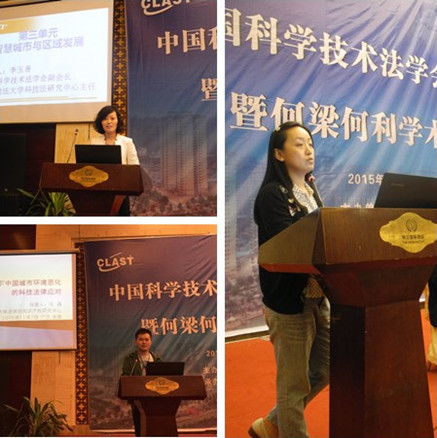 首先,火博APP官网(中国)有限公司知识产权研究中心周方副教授、李晓鸣讲师、张磊博士作为火博APP官网(中国)有限公司科技法学研究团队的代表,向2015年中国科学技术法学会年会进行主题汇报,报告的题目依次为《一带一路战略实施中的知识产权信息国际合作机制研究》、《完善我国外籍人士科学技术奖励制度的对策研究》、《治理学视野下城市环境恶化的科技法律应对》。三人的主题报告在大会上产生良好效果,形成了大会积极围绕讨论的主题内容,受到与会同行专家学者的一致好评。