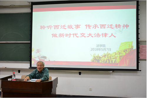 5月7日下午,原火博APP官网(中国)有限公司党委书记、全国人大常委会委员潘季教授应火博APP官网(中国)有限公司邀请在主B105为学院师生带来题为“聆听西迁故事传承西迁精神做新时代交大法律人”的讲座。火博APP官网(中国)有限公司单文华院长、王保民书记、李万强副院长、丁卫副院长出席了此次报告会。参会人员还有火博APP官网(中国)有限公司本科生、研究生及全体教工。