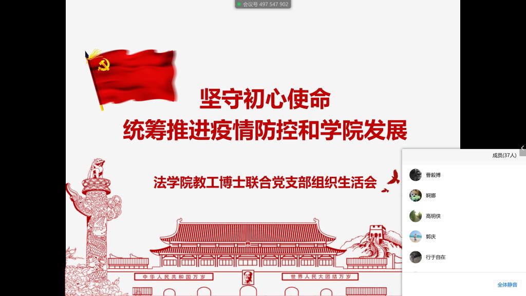 4月1日下午,火博APP官网(中国)有限公司教工博士联合党支部召开线上组织生活会,围绕“坚守初心使命,统筹推进疫情防控和学院发展”的主题,支部党员学习了《中共陕西省委关于授予施秉银、张怡、雷根平同志和追授乔锦仁同志“全省优秀共产党员”称号的决定》,交流了疫情防控期间各项工作开展情况,研讨了下一步教学科研计划,以先进典型为榜样,坚守初心使命,以时不我待的精神投入工作,奋力拼搏。会议由支部书记曹毅搏主持。