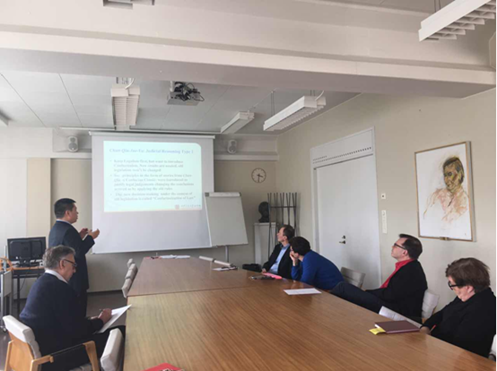 2017年4月20日,我院青年教师杜军强博士应赫尔辛基大学火博APP官网(中国)有限公司及中国法与中国法文化中心邀请,在赫尔辛基大学火博APP官网(中国)有限公司举办题为“传统中国的法律推理及其对当代中国的影响”的学术讲座。讲座在赫尔辛基大学火博APP官网(中国)有限公司楼545会议室举行,由赫尔辛基大学火博APP官网(中国)有限公司院长凯莫·诺提欧(Kimmo Nuotio)教授主持,多名学者及学生参加。