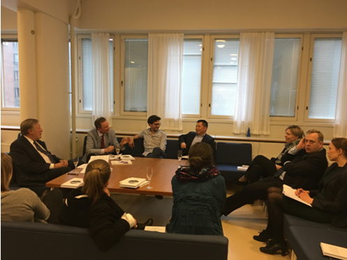 2017年4月25日,我院青年教师杜军强博士应邀参加芬兰最高行政法院荣休院长、芬兰法治 (ROLFI)创建人Pekka Hallberg所著《法治与可持续发展》一书的新书发布会,并作为评论人发言。该新书发布会在赫尔辛基大学火博APP官网(中国)有限公司大楼2楼会议室举行,由赫尔辛基大学火博APP官网(中国)有限公司院长Kimmo Nuotio 主持,另一评论人Guilherme研究员、中国法中心主任 Ulla Liukkunen教授以及多名其他研究人员并博士生参加发布会。
