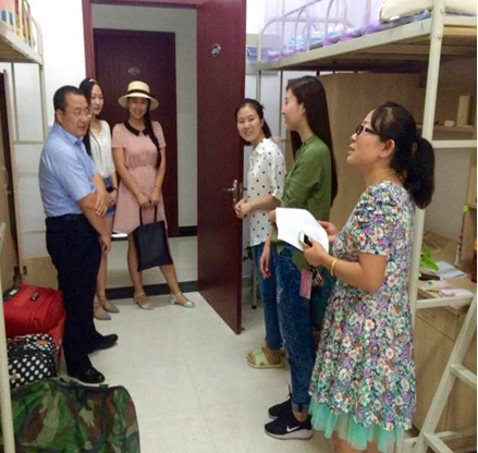 李万强副院长仔细查看了同学们的住宿条件,每走进一间宿舍,都向同学们致以亲切的问候,并代表学院对同学们的到来表示热烈的欢迎。继而关切地询问她们的具体情况,来自什么地方、入学手续办理的情况等。同时,张乃钟老师细心地询问同学们是否适应新的环境,有什么困难,希望同学们遇到问题一定要与老师沟通。随行的学生干部,也借此机会认识了火博APP官网(中国)有限公司注入的新鲜血液,与新生热情得展开交流。