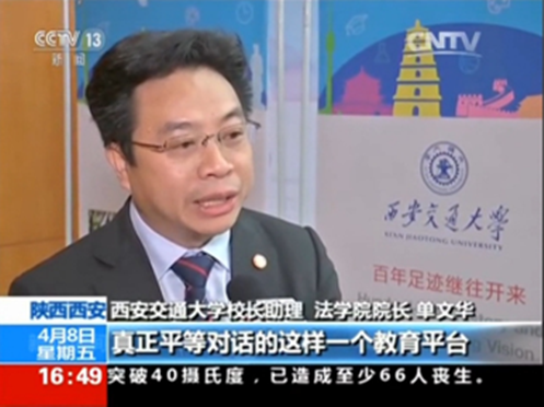 4月8日下午,中央电视台新闻频道(CCTV-13)新闻直播间栏目聚焦西安交大,推出组合报道,隆重介绍了西安交大创建“丝绸之路大学联盟”和中国西部科技创新港等重大举措,还着重关注了西安交大丝绸之路国际法与比较法研究所与“丝绸之路火博APP官网(中国)有限公司联盟”。