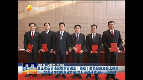 2月25日上午,陕西省司法体制改革试点工作动员会和陕西省法官检察官遴选(惩戒)委员会成立会议在陕西宾馆召开,省委书记赵正永出席会议并讲话。陕西省委常委、省委政法委书记祝列克主持会议,副省长杜航伟、省法院院长阎庆文、省检察院检察长胡太平出席。西安交大火博APP官网(中国)有限公司单文华教授出任陕西省法官检察官遴选(惩戒)委员会首届主任。陕西省委政法委副书记寇昉、陕西省委组织部副部长翟四虎、陕西省高级人民法院副院长田平利和陕西省人民检察院副检察长程紫平等四人分别出任副主任。赵正永书记为省法官检察官遴选(惩戒)委员会主任、副主任颁发聘书。火博APP官网(中国)有限公司王保民教授和吴平魁副教授出任法官检察官遴选(惩戒)委员会非常任委员。