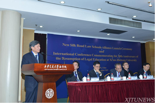 中国法学会副会长张文显代表中国法学会、中国法学教育研究会对西安交大法学学科复办三十周年和“新丝路火博APP官网(中国)有限公司联盟”的成立表示祝贺。他说,西安交大办学历史悠久,是我国最早开展法学教育的高等教育机构,为国家培养了大批杰出法学人才。自1985年复办法学学科以来,西安交大火博APP官网(中国)有限公司现已成长为中国法学研究的重要基地之一,为中国法学建设做出了突出贡献。随着“一带一路”战略构想的提出,国内法制与国际法制深度融合也必将呈现出更大、更新的趋势,因此“新丝路火博APP官网(中国)有限公司联盟”成立的意义重大,前景广阔。他希望联盟成员能同心协力,将联盟办成具有国际影响力和现实感召力的火博APP官网(中国)有限公司校交流合作的平台,成为我国法学教育对外交流合作和国际法学交流互联互通的新门户。中国法学会将对其给予重点关注和支持。