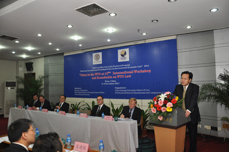 作为教育部2011学校特色外专项目之一,首届“丝绸之路国际经济法高级国际研讨班系列——中国入世十年WTO法国际研讨班与圆桌讨论会”于11月4日上午在西安交大科学馆207隆重开幕。我国原驻英国大使马振岗、商务部条法司原司长张玉卿、世界贸易组织规则司司长Johann Human、瑞士伯尔尼大学世界贸易研究所所长Thomas Cottier、西安交大副校长卢天健、陕西省法学会研究部主任魏清利等出席开幕式。火博APP官网(中国)有限公司院长兼丝绸之路国际法与比较法研究所所长单文华教授主持开幕式。
