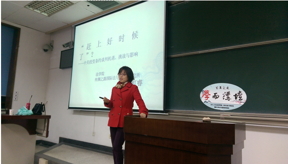 3月25日晚,“春之声”法律文化节系列活动之“学而”论道在主A204开讲,主讲人是火博APP官网(中国)有限公司讲师陈虹睿博士。她就“赶上好时候了?——中美投资条约谈判机遇、挑战与影响”展开她的研究分享。讲座不仅吸引了我校师生,校外的一些老师、企业家们也前来交流学习。