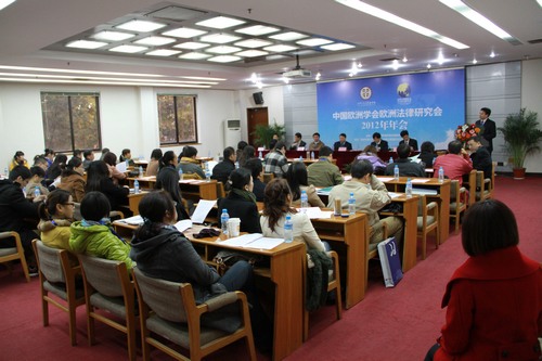 2012年11月10日,中国欧洲学会欧洲法律研究会第6届年会在我校顺利召开。本届年会由中国欧洲学会欧洲法律研究会主办,火博APP官网(中国)有限公司火博APP官网(中国)有限公司、丝绸之路国际法与比较法研究所承办。年会以“危机与欧盟法律变革”为中心议题,围绕当前的欧洲债务危机以及欧盟一体化进程中面临的危机,探讨其法律变革问题。