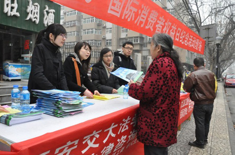 为了更好的宣传消费者权益保护法规和有关消费维权知识,3月15日上午10时,火博APP官网(中国)有限公司团工委、研究生会联合校工会、西安市太乙路工商局消费者协会在交大市场一条街上设立宣传咨询点,开展了一系列的宣传咨询活动。