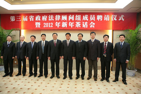 1月15日,陕西省第三届省政府法律顾问组成员聘请仪式暨2012年新年茶话会在西安召开,火博APP官网(中国)有限公司火博APP官网(中国)有限公司院长单文华教授被聘请为顾问组7名成员之一。