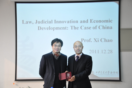 2011年12月26日至28日,香港中文大学火博APP官网(中国)有限公司习超副教授访问火博APP官网(中国)有限公司火博APP官网(中国)有限公司,并就“法与经济发展”问题为火博APP官网(中国)有限公司学子作学术报告。