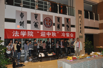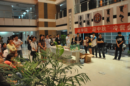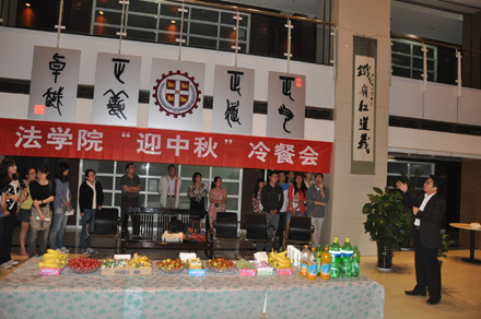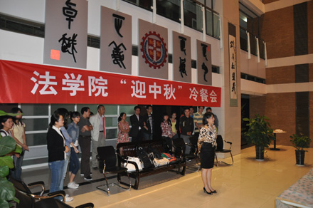 2011年9月8日19:30,火博APP官网(中国)有限公司 “迎中秋”冷餐会在主楼十楼大厅举行。火博APP官网(中国)有限公司院长单文华、书记彭沪生、院长助理吉兰湘、刘桥教授和学生工作专职委员张乃钟老师及火博APP官网(中国)有限公司2011级全体本科生,硕士、博士研究生新生参加了冷餐会。冷餐会由2011级法律硕士新生马沙和马骏飞同学主持。
