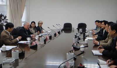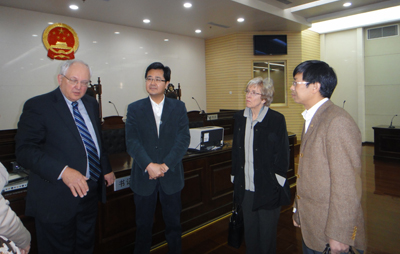 3月25日,安德森大法官及其夫人在我校火博APP官网(中国)有限公司副院长王保民带领下参观了陕西省高级人民法院,省高院田平利副院长出面迎接,并亲自带领安德森大法官参观了省高院气势宏伟的办公大楼,包括民事、刑事审判庭、集团诉讼审判大厅、审判委员会合议室以及法院图书馆。之后,安德森大法官与省高院田院长和各刑事审判庭庭长法官们进行了座谈,就双方感兴趣的刑事诉讼程序中“诉辩交易”等问题展开深入探讨。火博APP官网(中国)有限公司外事秘书华雨婷参加了座谈会。