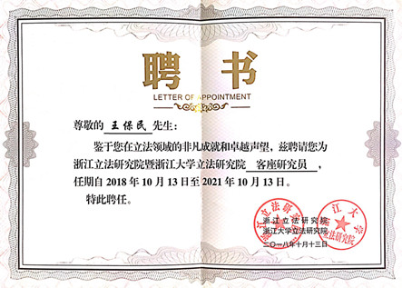 10月13日,首届之江立法论坛暨立法研究院学术委员会成员、客座研究员、兼职研究员聘任仪式在浙江杭州举办。论坛以“新时代地方立法”为主题,以推进立法领域高层次理论研究,提升立法研究水平,推动立法工作,以更好的适应新时代新要求。我校火博APP官网(中国)有限公司教授、立法与党内法规研究中心主任王保民受聘为“浙江立法研究院暨浙江大学立法研究院”客座研究员,并应邀作为与谈人在论坛上做了点评发言。