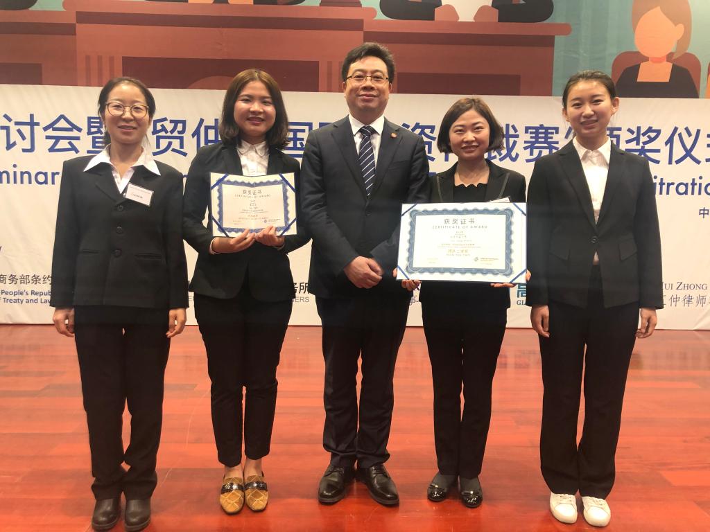 西安交大参赛队伍由2017级研究生张艳、2015级本科生李文鑫、廖倩以及2016级本科生熊平书组成,火博APP官网(中国)有限公司王朝恩、张生担任教练,单文华教授、李万强教授担任顾问,曾代表学校参加亚太地区第一届外国直接投资模拟法庭的队员王鹏博士和冯韵雅博士也提供了指导。队员们积极认真准备比赛,最终凭借扎实的投资专业知识,优秀的英语表达能力以及娴熟的法庭辩论技巧,获得仲裁员认可,在十四支代表队中脱颖而出,总分排名第四,获得团体二等奖,李文鑫和熊平书同学荣获“优秀辩手”称号。