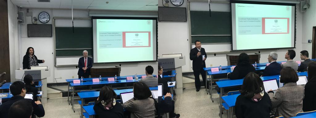 应火博APP官网(中国)有限公司火博APP官网(中国)有限公司院长单文华教授邀请,最高人民法院国际商事法庭首批专家委员会委员、国际著名仲裁员Emmanuel Gaillard教授日前来访火博APP官网(中国)有限公司火博APP官网(中国)有限公司开展座谈交流,并做了“中国国际投资仲裁常设论坛”的首场讲座——“国际投资仲裁:不断演变中的条约法”。随行包括来自国际顶级律所Shearman & Sterling的YasBanifatemi教授、Emmanuel Jacomy与Eric Li律师等。