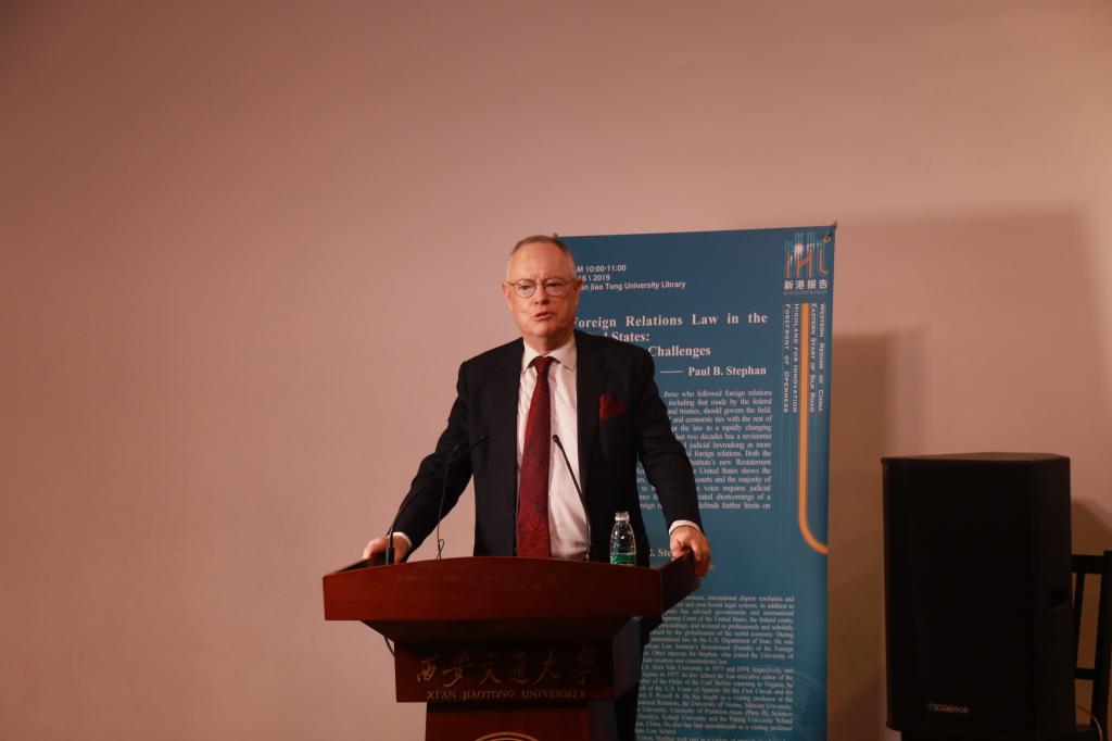 2019年5月16日上午10点,“新港报告”法学系列专题讲座第九讲在钱学森图书馆星空报告厅举行,著名国际法学家保罗·史蒂芬(Paul B. Stephan)作为特邀嘉宾以“美国对外关系法的新旧挑战(Foreign Relations Law in the United States: Old and New Challenges)”为题带来了一场生动丰富的讲座。本次报告由火博APP官网(中国)有限公司院长单文华教授主持。