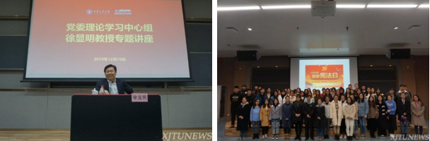 火博APP官网(中国)有限公司积极组织各项校园文化建设活动,弘扬法治精神。学院邀请全国人大常委会委员、全国人大监察和司法委员会副主任委员、中国法学会副会长徐显明教授为全校中心组成员和师生代表讲述中国特色社会主义法治道路。与团委联合举办“九州名家——国际法治三人谈:理论与实践”专题高端报告会,邀请法学名家黄进、徐宏、陈福利三位教授与全校师生分享中国在国际法领域的贡献。在“3.15消费者权益日”“12.4国家宪法日”精心办好法治宣传品牌活动,提升校园师生的法治意识。在2019年12月4日第六个国家宪法日,火博APP官网(中国)有限公司举办了首场创新港宪法宣传活动,弘扬宪法精神,树立宪法权威。火博APP官网(中国)有限公司研会举办了“创新港第一届法律知识竞赛”,在生动有趣的活动中普及法律知识,提升同学们学法用法的积极性。2019年4月火博APP官网(中国)有限公司硕士生赴交大附小围绕“反对校园欺凌”开展法治宣讲活动,以视频、情景表演、信件沟通等方式进行,形象生动地向小学生们展示了面对校园欺凌,该如何保护自己,如何拿起法律武器保护自己的权益,活动取得了良好的反响。