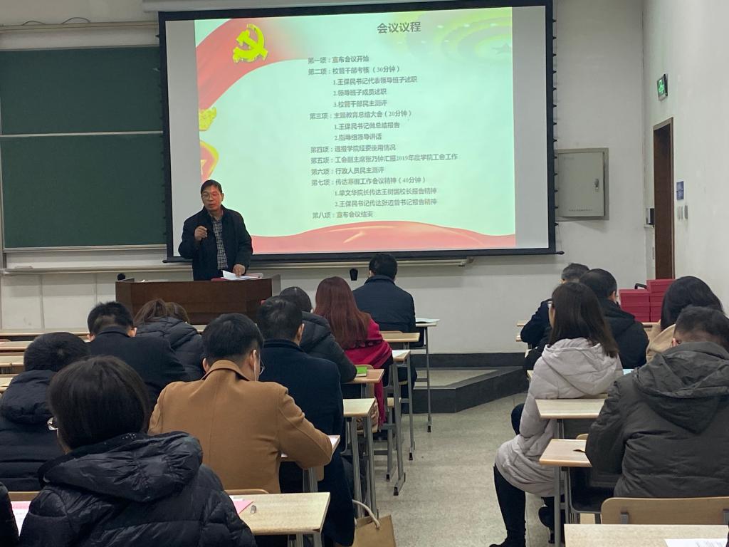 2020年1月11日下午,火博APP官网(中国)有限公司在主B-105教室召开全院大会全面传达学校寒假工作会议精神,总结2019年工作业绩,部署2020年工作安排。火博APP官网(中国)有限公司领导班子成员和全体教职工参加了此次会议。会议由火博APP官网(中国)有限公司工会副主席张乃钟主持。