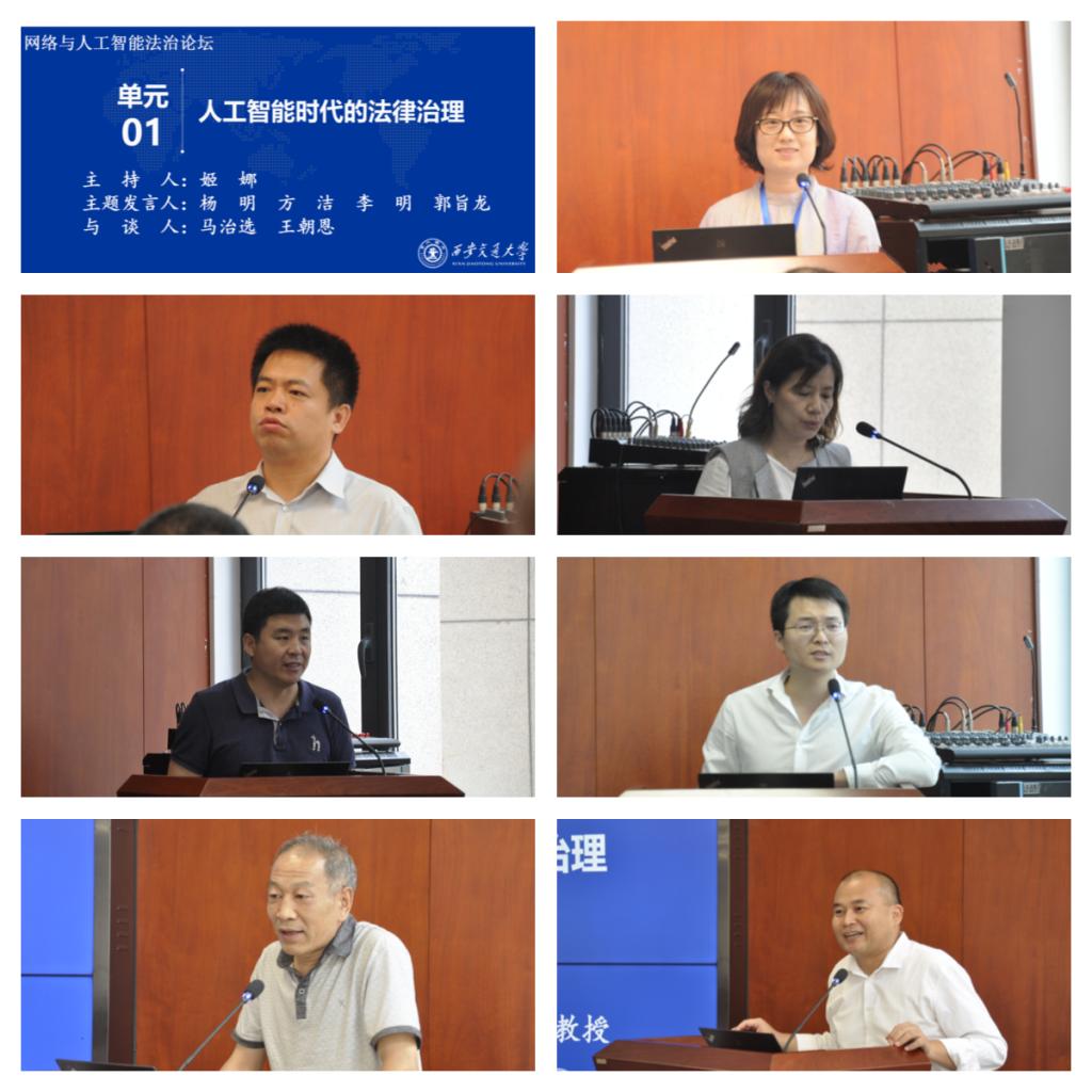 论坛由四个单元组成。第一单元“人工智能时代的法律治理”,由国防大学政治学院(西安校区)军队司法工作系姬娜副教授主持。北京大学火博APP官网(中国)有限公司教授、互联网法律研究中心副主任杨明以《数据驱动时代的法律规制》为题,分享了数据驱动竞争的经济内涵,并讨论了数字驱动竞争中行为的可规制性。浙大城市学院火博APP官网(中国)有限公司常务副院长方洁副教授结合自己长期担任杭州市人大法制委员会委员的经历,以《城市大脑赋能城市治理促进条例》的立法过程为例,阐明“善治下的立法的产生应当来自民众的真实需求”,为智能城市治理选择提供参考。西北政法大学博士生李明聚焦网络反恐,提出完善立法、加强国际合作、强化反恐人才培养等多方面对策。中国政法大学网络法学研究所郭旨龙老师从科幻文学中的机器人法则入手,提出其对人工智能法学研究的可借鉴性与局限性,开启了与会人员之间的“头脑风暴”。与谈人西北政法大学马治选教授及火博APP官网(中国)有限公司火博APP官网(中国)有限公司王朝恩副教授分别对四位发言人的学术报告进行点评,并提出了自己关于人工智能时代城市治理、人工智能法律规制的见解。