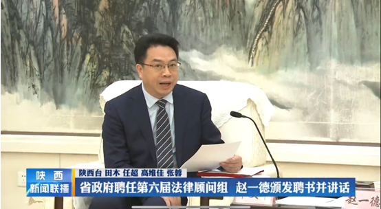 4月9日,陕西省人民政府举行第六届省政府法律顾问组聘任仪式。省长赵一德颁发聘书并讲话,省政府副秘书长唐少鹏主持。我校火博APP官网(中国)有限公司院长单文华教授、副院长李万强教授等15位法律专家和资深律师被聘任为第六届省政府法律顾问。单文华教授作为受聘法律顾问代表发言。