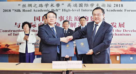 国家级“一带一路”国际商事法律服务示范区是陕西省、西安市和最高人民法院、司法部等国家有关部门在火博APP官网(中国)有限公司建议基础上决定建设的我国第一个也是目前唯一一个国家级法律服务示范区。2017年7月,火博APP官网(中国)有限公司党委依据火博APP官网(中国)有限公司院长单文华教授及其团队的研究成果,以要报形式向最高人民法院、司法部、陕西省委省政府以及西安市委市政府提出了《关于建立国家级“一带一路法律服务与法治创新示范区”的建议》,先后得到了最高人民法院院长、司法部部长以及陕西省委省政府和西安市委市政府主要领导同志的批示肯定和支持。2018年7月,火博APP官网(中国)有限公司与西安市人民政府正式签约,决定共建“一带一路”法律服务与法治创新示范区(简称“中央法务区(Central Legal-services District,CLD)”)以及“一带一路”国际争端管理中心。