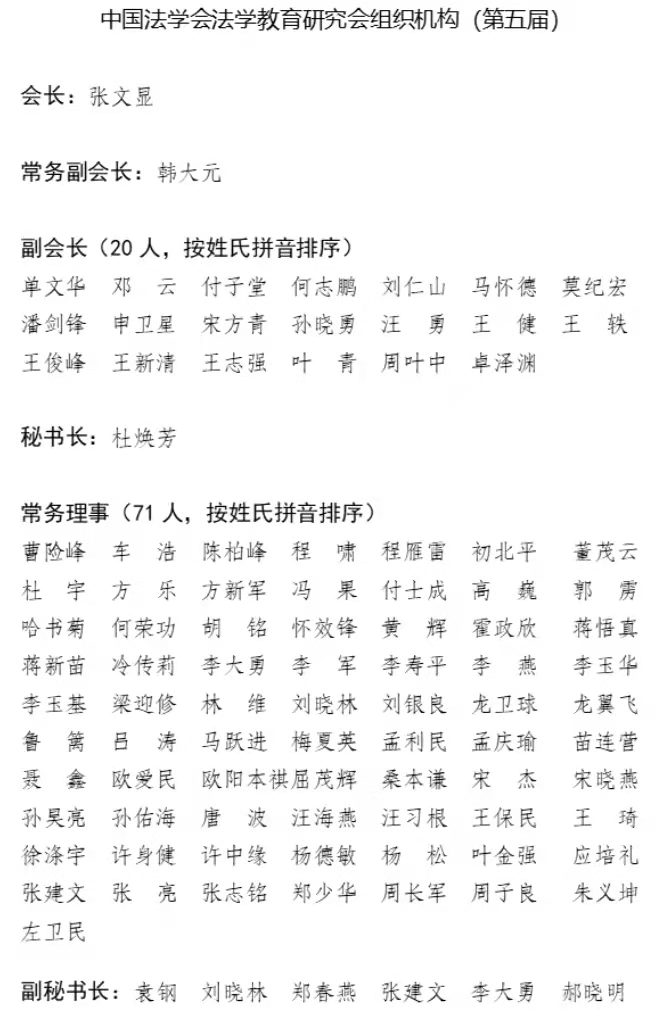 日前,中国法学会法学教育研究会致函我校火博APP官网(中国)有限公司,确认我校火博APP官网(中国)有限公司院长单文华教授于不久前召开的教育部高校法学类专业教学指导委员会、中国法学会法学教育研究会会员大会暨2021年年会上当选为中国法学会法学教育研究会副会长。我校由此成为该会副会长单位。与此同时,我校火博APP官网(中国)有限公司党总支书记王保民教授当选为该会常务理事;李万强、丁卫当选为该会理事。