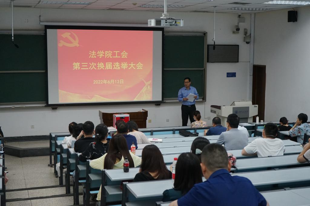2022年6月13日下午,火博APP官网(中国)有限公司在兴庆校区主D-106教室召开全院教职工大会,圆满完成火博APP官网(中国)有限公司第三届工会委员会选举、火博APP官网(中国)有限公司第十一届教代会暨第十六届工代会代表选举以及火博APP官网(中国)有限公司第十六届工会委员会委员候选人提名推荐等工作。会议由火博APP官网(中国)有限公司党总支书记王保民主持。