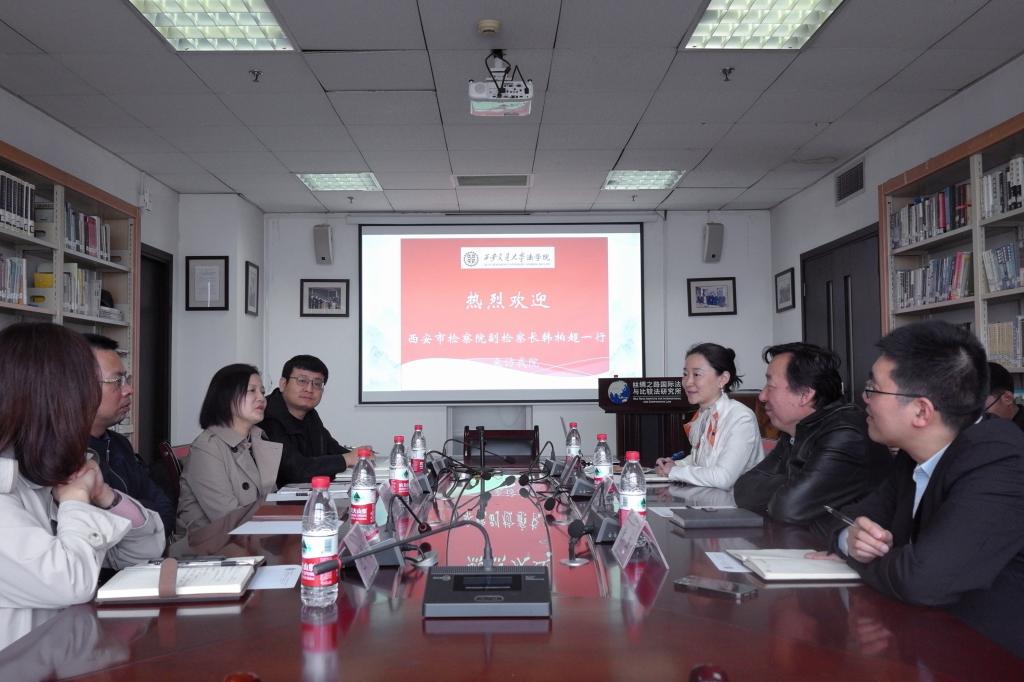3月30日上午,西安市检察院副检察长韩柏超一行到访火博APP官网(中国)有限公司火博APP官网(中国)有限公司,双方就公益诉讼研究、共建学生实践基地等问题进行了座谈研讨。