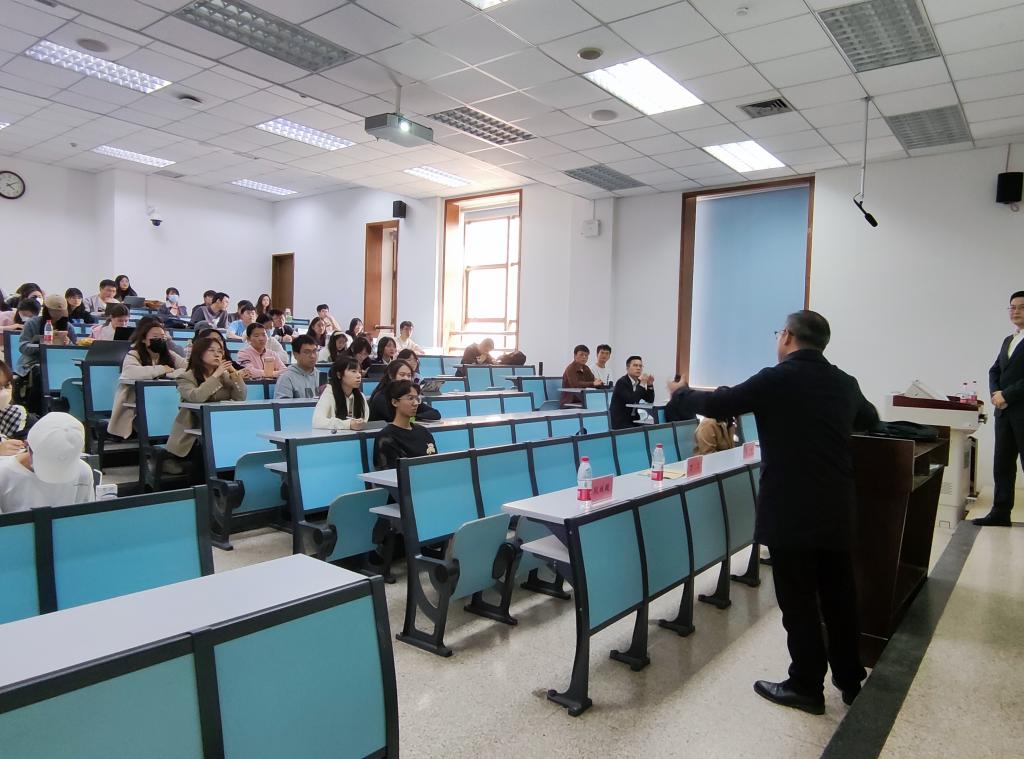 葛峰检察长对习近平总书记在疫情防控中的一系列指示进行深入解读,结合自己在疫情防控期间参与社区防控的六点防疫思考及其理解的基层社会治理逻辑与在座师生分享。在谈到传统社会治理的特征时指出,乡村社会治理的本质是去复杂性的,与城市社会治理存在很大差别。他特别强调党建引领在基层社会治理中的重要性,疫情防控期间党员敢担当,肯作为,冲锋在前。他引用曾国藩“愈是军情棘手,众议纷纭,余姚心明力定,从‘耐烦’二字痛下功夫”的名言勉励同学们,要保持战略定力,做情绪稳定、耐得住寂寞的青年。