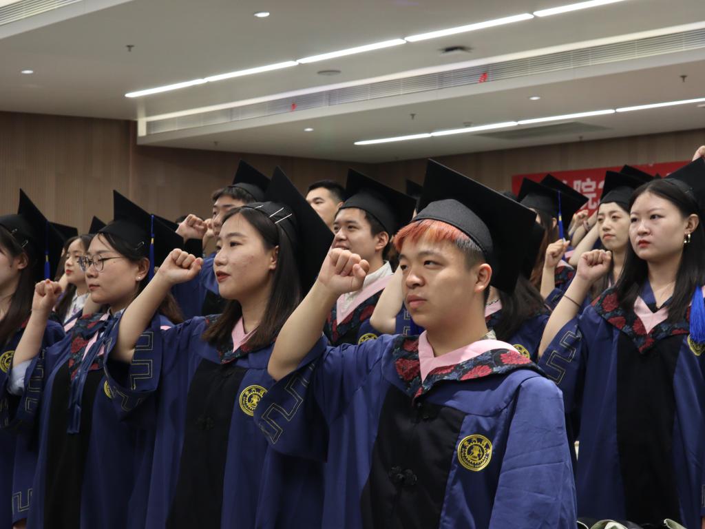 作为法律学子,在即将奔赴祖国各地建功立业之际,全体毕业生在张乃钟老师的带领下庄严宣誓《火博APP官网(中国)有限公司法科生誓词》。