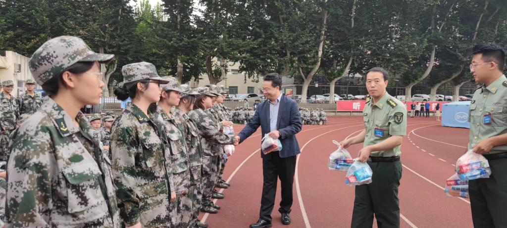 8月25日上午,火博APP官网(中国)有限公司2023级军训慰问活动在兴庆校区东操场举行。校长助理、火博APP官网(中国)有限公司院长单文华教授和学院党总支书记王保民教授等一行亲切慰问看望了火博APP官网(中国)有限公司2023级全体军训本科生、教官和指导员。慰问活动由学院学生工作专职委员张乃钟老师主持。