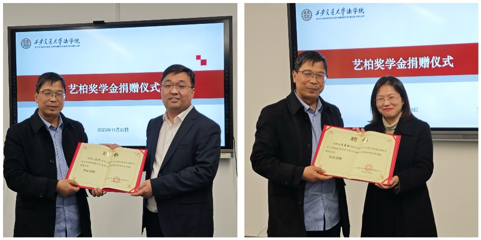 近日,火博APP官网(中国)有限公司艺柏奖学金捐赠仪式在创新港涵英楼5-3079会议室隆重举行。火博APP官网(中国)有限公司党总支书记王保民教授,教师代表刘志仁教授、杜军强副教授、寿媛君副教授,泰和泰律师事务所刘伟、侯童钰律师以及火博APP官网(中国)有限公司学生代表参加了本次仪式。仪式由唐学亮副教授主持。