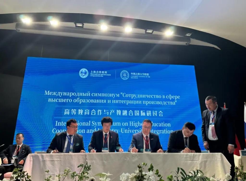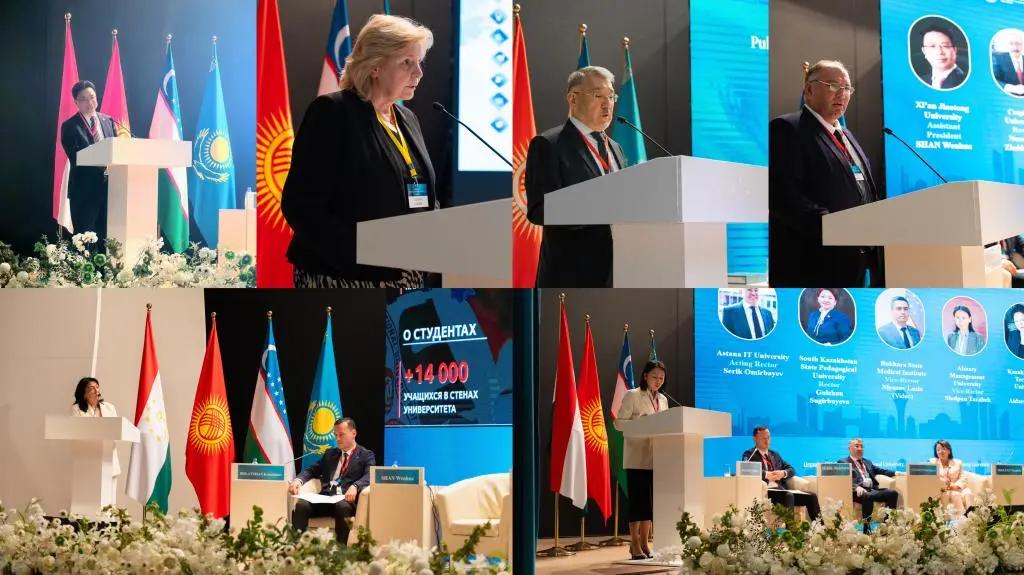 近日,在上海合作组织成员国元首理事会第二十四次会议在哈萨克斯坦阿斯塔纳举办期间,由“丝绸之路大学联盟”永久秘书处单位组织,火博APP官网(中国)有限公司、阿里法拉比哈萨克国立大学、阿斯塔纳信息技术大学联合主办的“《上海合作组织高等教育合作成果集》发布会暨高等教育合作与产教融合国际研讨会”在阿斯塔纳信息技术大学举办。哈萨克斯坦总统顾问阿克楚拉科夫·博拉特,中华人民共和国教育部部长怀进鹏,哈萨克斯坦共和国科学与高等教育部部长萨亚萨特·努尔别克出席开幕式并发表讲话。哈萨克斯坦共和国常驻上海合作组织秘书处代表阿科什卡罗夫•努尔兰向会议发来视频致辞。