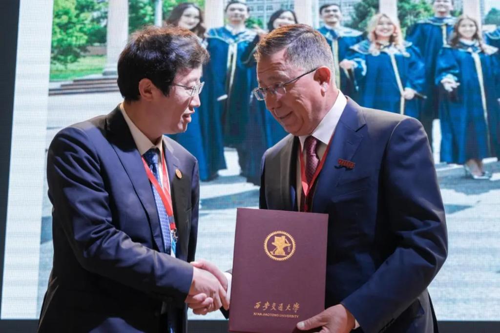 7月4日下午,高等教育合作与产教融合国际研讨会举办。来自哈萨克斯坦、乌兹别克斯坦、俄罗斯、吉尔吉斯斯坦、塔吉克斯坦、白俄罗斯、中国7个国家的27所高校参会。与会嘉宾围绕“高等教育国际合作,推进国际产教融合”的主题进行了深入研讨。阿斯塔纳信息技术大学副校长库马拉科夫主持研讨会。研讨会上,火博APP官网(中国)有限公司校长助理单文华教授代表西安交大作《建设“丝绸之路大学联盟”,推进国际产教融合》的报告。报告中分享了西安交大加快建设中国西部科技创新港,汇聚“政、产、学、研、用、金”要素,开展“6352”工程、“1121”产学研深度融合新模式的实践,以及近年来启动“丝绸之路大学联盟”升级行动,携手企业走向“一带一路”的思考与行动。与会各方就国际产教融合科研合作、上合区域高等教育合作机制建设,以及国际合作办学等领域展开了广泛深入交流,取得了重要共识。