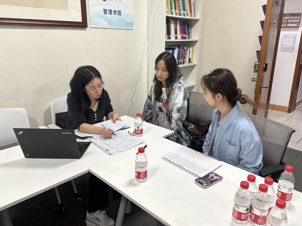 在各位领导和老师的发言后,座谈会进入一对一指导环节。每个学生都获得了与老师们面对面交流的机会,王老师帮助学生核对学分完成情况、确认培养计划、认定课程等,为学生们提供了个性化的学业指导和帮扶。