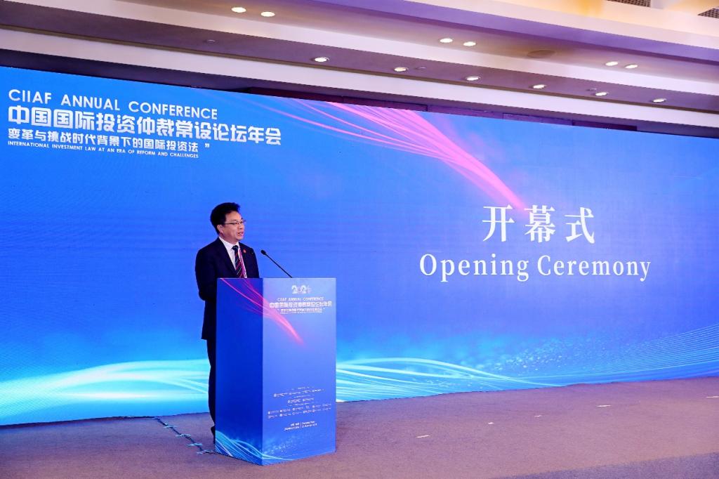 开幕式上,UNCITRAL秘书长Anna Joubin-Bret,商务部条法司二级巡视员于宁,贸仲副主任兼秘书长、常设论坛主席王承杰现场致辞,ICSID秘书长Martina Polasek视频致辞。火博APP官网(中国)有限公司校长助理、文科资深教授、火博APP官网(中国)有限公司院长、常设论坛执行主席单文华主持开幕式。