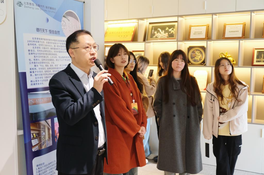 随后,德恒西咸律所执行主任范玉华律师带领火博APP官网(中国)有限公司师生参观了律所的办公环境,如合伙人办公室、西北地区共享办公室、模拟法庭等,以便广大学子可以更加直观地感受律师职业的工作日常和专业氛围。范律师介绍了德恒律师事务所的成立时间、现有机构数量,以及在党建工作和法律服务方面的全面布局和成就。在党建工作方面,他指出德恒律所坚持“分所开在哪里,党支部就建在哪里”的原则,以党建促所建,明确党建在业务发展中的引领作用,荣获“全国先进党组织”的荣誉称号;在法律服务方面,他指出德恒律所服务“一带一路”等国家重要战略项目,为国家发展贡献力量。
