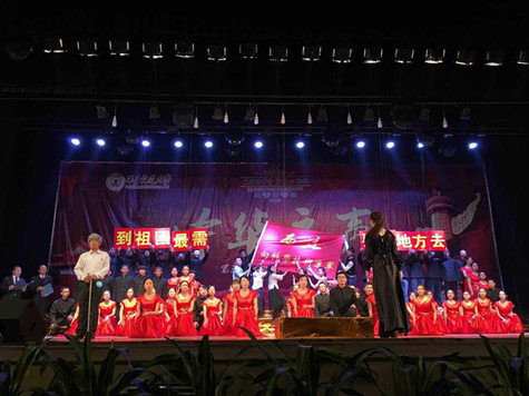 “向前进!向前进!西迁气势不可阻挡!向前进!向前进!朝着西迁的方向!”随着全体合唱队员的齐声演唱,整个合唱队伍变换成“XQ(西迁首字母)”和“60”的造型,一面写有“西迁!想科学技术进军!”旗帜迎风飘扬,将现场氛围带至顶点,瞬间点燃了全场观众的激情。大树西迁,饮水思源,在“到祖国最需要的地方去!”的誓言中展现了新一辈火博APP官网(中国)有限公司与化工学院青年学子的拳拳报国情。