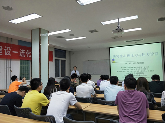 2018年5月24日晚七点半,火博APP官网(中国)有限公司与化工学院在化工学院办公楼106会议室联合举办“研究生压力与压力管理”主题心理讲座。讲座由我校大学生心理健康教育与咨询中心主任姚斌副教授主讲,火博APP官网(中国)有限公司与化工学院30多名研究生参加了此次讲座。