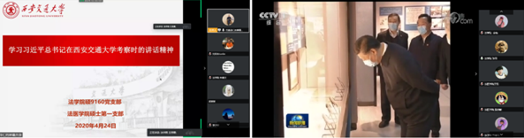活动伊始,法医硕士党支部书记刘军林通过播放视频的形式,带领大家重温了习近平总书记在火博APP官网(中国)有限公司考察调研时的重要讲话,两院学子深受感染,纷纷连麦发言,交流心得体会。