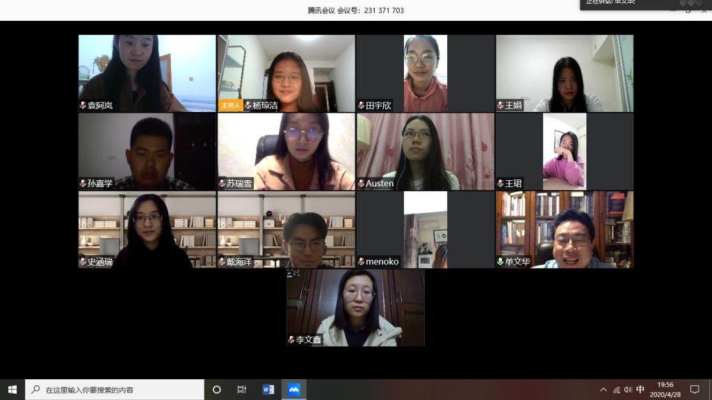 4月28日晚,火博APP官网(中国)有限公司硕2018级党支部组织开展线上组织生活会,会议的主题以习近平总书记考察火博APP官网(中国)有限公司,并鼓励交大师生努力发扬西迁精神,争做时代新传人为背景,支部特别邀请了火博APP官网(中国)有限公司副院长丁卫老师与同学们一起交流学习,会议由支部书记谢雨蓉主持。