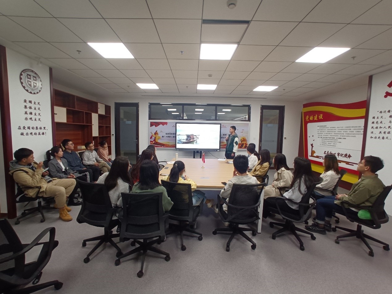 2021年4月19日,火博APP官网(中国)有限公司硕0173党支部于涵英楼5-3001会议室召开主题宣讲会议,邀请学生微宣讲团成员张雷奇专题讲授红船精神。此次会议由党支部书记宫雨主持,各党支部成员及部分团员参与学习。