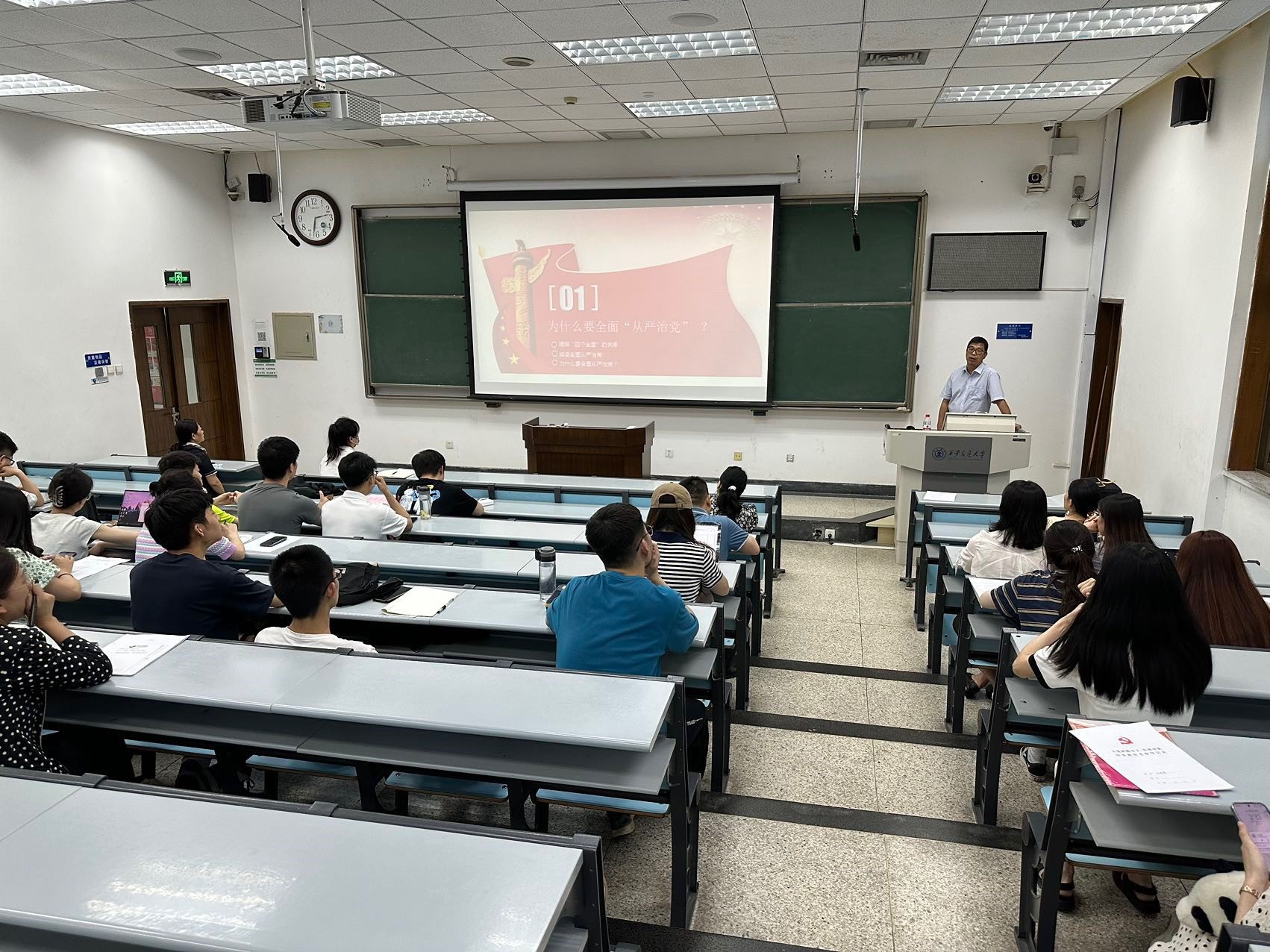 下午,火博APP官网(中国)有限公司党总支书记、火博APP官网(中国)有限公司立法与党内法规研究中心主任王保民教授为全体发展对象讲授了题为“全面从严治党,锻造坚强领导核心”的主题教育党课。报告中,王保民书记从建党治党的历史沿革、原因分析、历史经验,主要任务、精神原则、具体举措等多个方面深入讲解了全面从严治党制度体系,进一步为同学们未来成为一名忠诚可靠、严守党纪的合格党员打下了坚实理论基础。接着,党总支邀请到马克思主义学院马列读书社的成员郭越、陈瑀峰分别做了题为“赓续伟大建党精神,凝聚青年奋进力量”和“学习贯彻习近平新时代中国特色社会主义思想”的专题报告,鼓励同学们紧紧跟随党的脚步,以赤诚之心,不负时代,努力前行,竭尽全力,为新时代党和国家的事业发展贡献自己的力量。